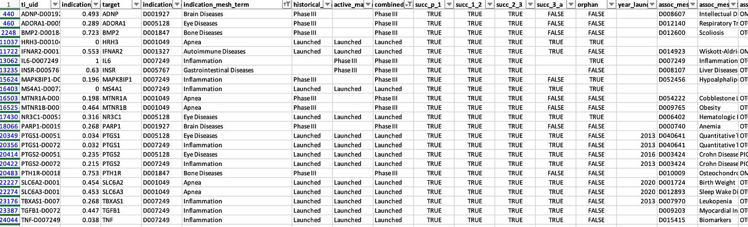 The dataset underlying this analysis is far from perfect. It contains duplicate entries, inaccurate development-stage information for multiple targets, misassigned or overly broad indications, misaligned mappings of genetic traits to disease, and imprecise, heterogeneous evidence for genetic support. Anyone familiar with even a few T-I pairs will quickly notice these imperfections. In this regard, it is hard to trust the accuracy of an estimate derived from such a dataset.
