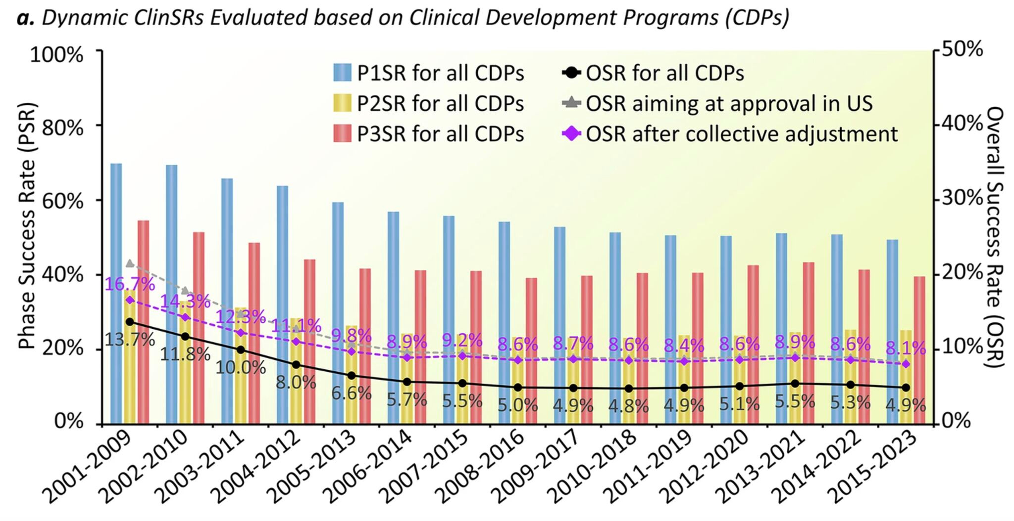 Considering the inefficiency of the status quo, this is massive improvement. The biggest bottleneck in drug development is not the generation of new ideas (as often implied), but the generation of ideas that survive the bottleneck of clinical trials. If the claim of this paper is true, the napkin math is compelling: prioritizing 10 programs without considering genetic support might yield at best one approved drug that must pay for the other nine failures. Prioritizing programs with genetic support, in contrast, could produce two or even three approvals, dramatically changing the economics of drug development.